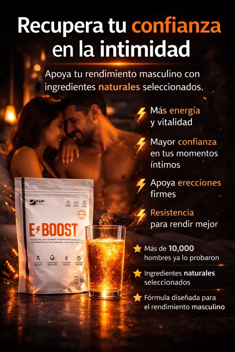 Porque E-BOOST no es un químico de efecto momentáneo, sino una fórmula completa que recupera tu energía, deseo y rendimiento desde dentro. Mientras otros productos sólo estimulan temporalmente, E-BOOST fortalece tu cuerpo, mejora tu circulación y potencia tu confianza día tras día.