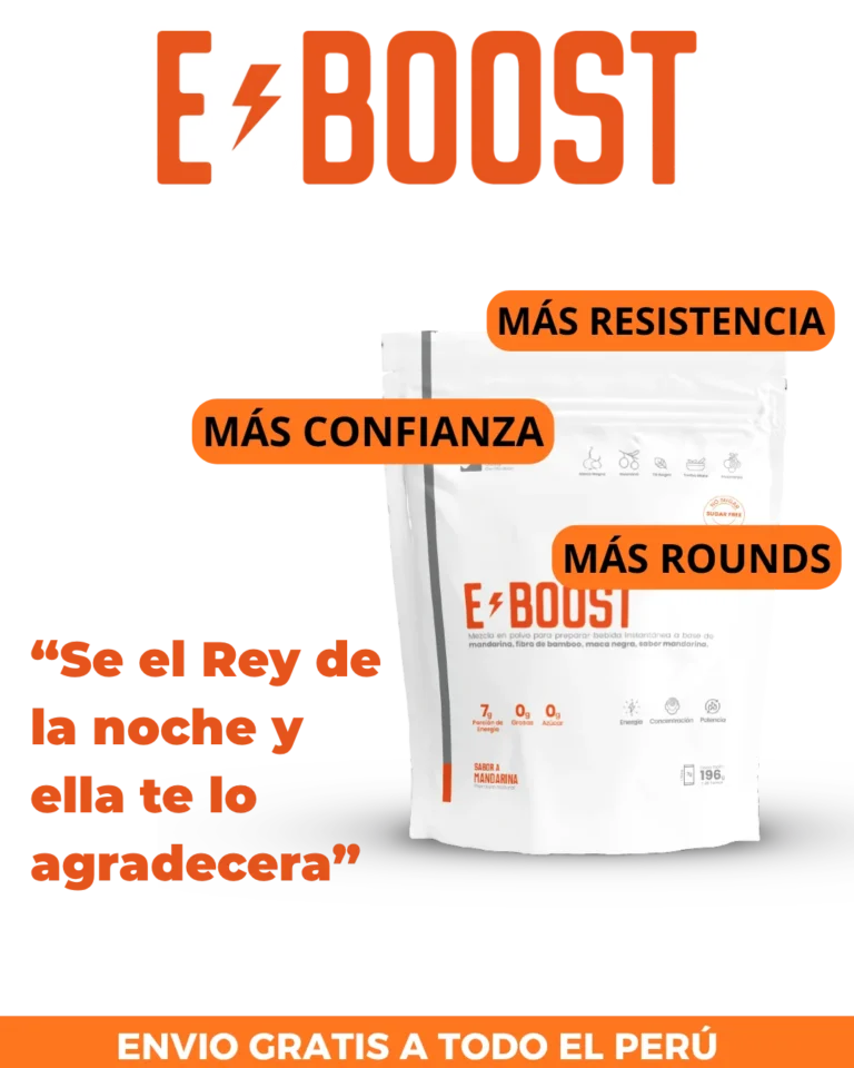 • Sí. E-BOOST contiene maca negra, huanarpo y guaraná, ingredientes naturales reconocidos por mejorar la circulación y estimular la respuesta sexual masculina. Al aumentar el flujo sanguíneo y equilibrar las hormonas, ayuda a lograr y mantener erecciones firmes y duraderas, incluso en quienes ya han perdido potencia o confianza.Respuesta 1